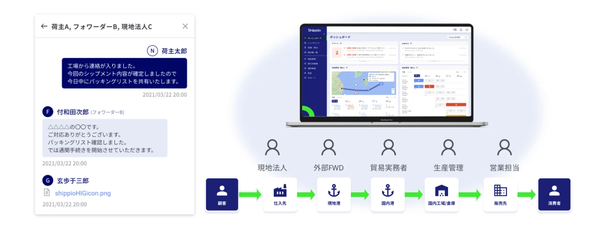 Shippio Platform専用のシステムやアプリの導入作業は必要ございません。Google ChromeやMicrosoft Edgeのブラウザを開ける環境下であればどこでも利用可能です。ご招待するゲストユーザーも同様の仕様となりますのでお気軽にご招待ください。
