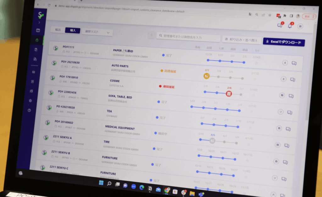 ところが「Shippio」を初めて使ってみて、驚くほど使いやすかったんです!これなら複数の海貨業者さんとのやりとりも一本化でき、複雑な物流業務の可視化が容易になるのではと実感しました。当然システムについてもあまり詳しくなかったのですが、分からない点はすぐに教えていただけるし、機能面のフィードバックも迅速。サポート面が手厚い点も決め手になりました。