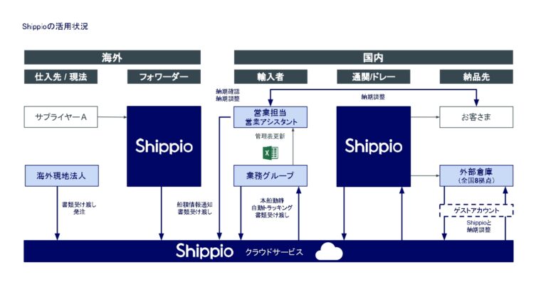 倉庫・海貨業者・自社の三者間でのやりとりを「Shippio」で完結。 貿易業務の可視化で物流業務の作業効率50%削減に成功!
