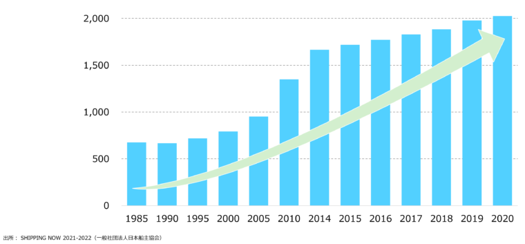現在、世界の海上輸送量は右肩上がりが続いています。近年はEC市場の拡大が輸送量増加を加速させており、貿易業務の大幅な効率化が求められています。