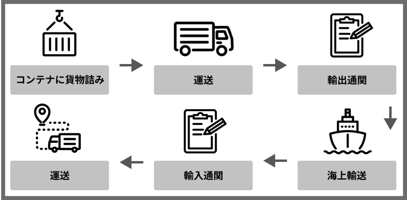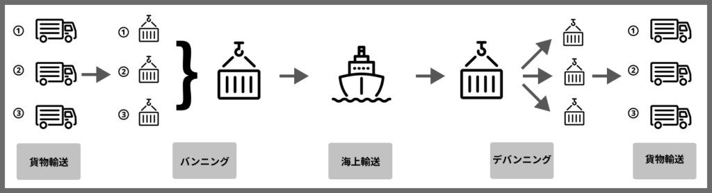 LCLは混載、コンテナのスペースを他の荷主とシェアする輸送形態です。LCLの流れは図の通りです。