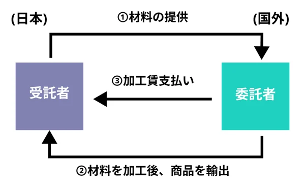 逆委託加工貿易は、材料を国外に輸出し、海外で加工・組立を行った後、完成品を国内に輸入する形態です。