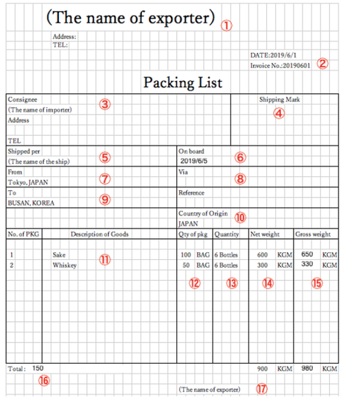 P/L(Packing List、 梱包明細書)
