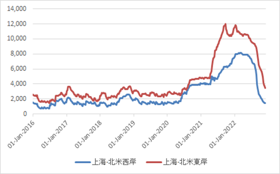 もともとの需給バランスの動向に加え、2020年から21年にかけては、荷物を届けることやスペース確保に強く意識が向き、バンドワゴン効果が働いて徹底したリスク回避策がとられたことも、運賃高騰に寄与していました。しかし、今はスペースに空きが出てきたことで不安感が減ったことが、今年夏頃からの運賃の下落基調に寄与していると考えられます。
