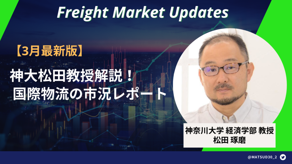 海運経済専門家の神奈川大学の松田琢磨教授に2026年3月時点の外部環境・荷動き・運賃動向について日本を軸に中国、東南アジア、北米、ヨーロッパなど各ルートごとの海運市況・航空貨物市況レポートをまとめていただきました。