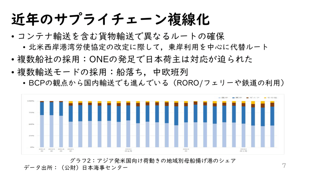 新型コロナ感染拡大を受けて発生したコンテナ輸送およびサプライチェーンの混乱は、荷主企業に対してこれまでのサプライチェーンの在り方を再考する機会になったのではないかと考えます。