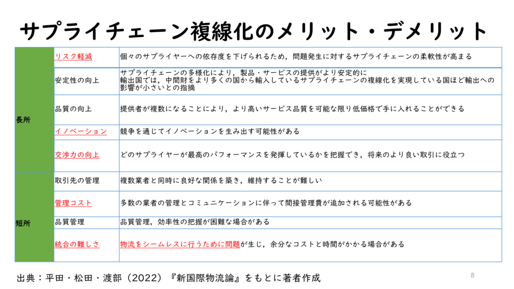 サプライチェーンが複線化するメリット、デメリットを複数の観点から考察していきます。